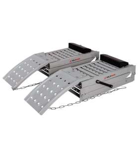 Allows double use, folded with a maximum load of 2300 kg, unfolded with a maximum load of 460 kg. Use it for loading products such as: Mini dumpers, lawnmowers, quad bikes, This loading ramp offers a width of 225 mm for loading products with slightly wider wheels.