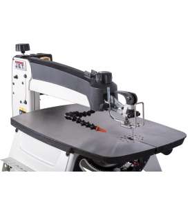 The JET JWSS-22B scroll saw is a large-scale, professional-type machine with its XXL 600 x 325 mm table and its very deep 565 mm gooseneck. Top model of high finish.