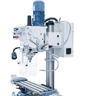 Con la taladradora-fresadora Bernardo BF45HSV Vario es posible realizar operaciones de taladrado y fresado en el plano horizontal, vertical y oblicuo. La construcción compacta, el avance del husillo estándar, la visualización digital de la carrera del husillo y el control continuo de la velocidad hacen que este modelo sea ideal para constructores de modelos, artesanos y talleres de reparación.