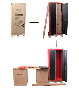 Le système d'armoires d'atelier WESS13 de HOLZMANN, avec 13 pièces assure l'ordre et l'espace de travail dans votre atelier, garage, cave ou salle de loisirs.