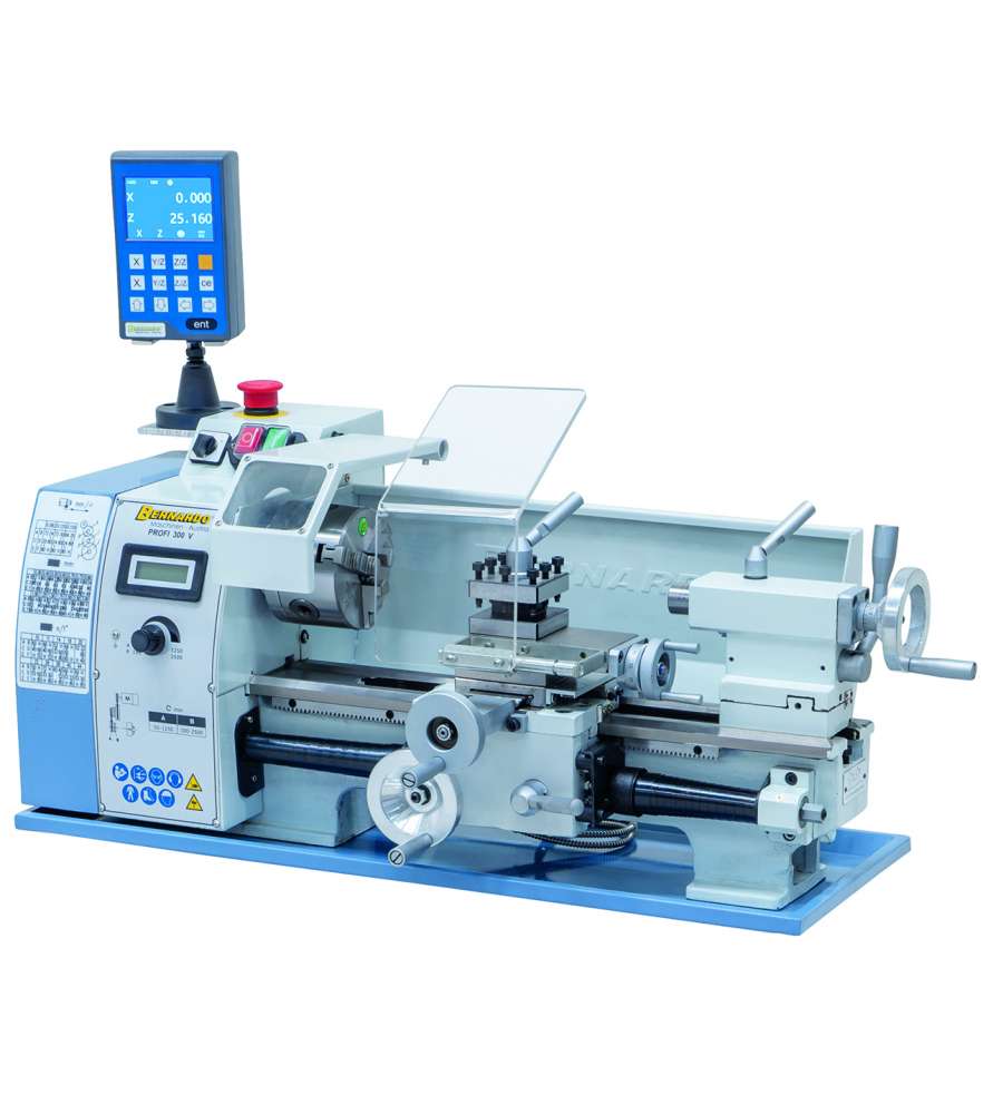 Le tour à métaux d'établi Profi 300 V est notre produit phare pour l'usinage de pièces jusqu'à 300 mm d'entrepointe. Équipé d'un variateur de vitesse, il conviendra à l'usinage dans les domaines de la mécanique de précision et du modélisme.