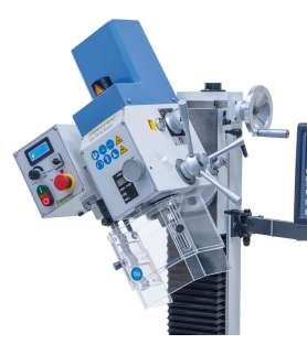 Succedendo alla KF 25 Vario, questa versione offre di serie un cono mandrino allargato, una tavola di fresatura più grande e 2 display digitali per la velocità (50 - 3000 giri/min) e la corsa del mandrino. Questa compatta foratrice si caratterizza anche per il variatore elettronico di velocità e per la testa di fresatura inclinabile da -90° a +90°.
