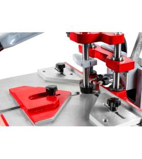 Cornici, infissi e molti altri collegamenti di telai possono essere realizzati in modo rapido e semplice con questa fresatrice a coda di rondine Holzmann KNF2. Inserire il corrispondente elemento di collegamento a coda di rondine e le due parti lavorate verranno unite tra loro (non occorre colla).