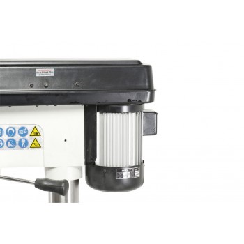 Mandrino a sgancio rapido 1 - 16 mm / B 18, un albero di montaggio del mandrino CM 4 / B 18, interruttore di inversione della rotazione sinistra/destra, protezione regolabile in altezza, pulsante di arresto di emergenza separato, tasselli a T e strumenti di servizio